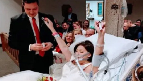 वाशिंगटन : सोशल मीडिया पर एक कपल के प्यार की अनोखी दास्तां सामने आई है, जिसके बारे पढ़कर आप भी रो देंगे. दरअसल, एक बीमार महिला ने हॉस्पिटल में अपने प्रेमी से शादी की इच्छा जाहिर की, शादी हुई भी, लेकिन ठीक 18 घंटे बाद महिला की मौत हो गई. मामला अमेरिका के कनेक्टिकट राज्य का है. इस प्रेमी जोड़े की लव स्टोरी वायरल हो रही है. अब आप भी सोच रहे होंगे कि आखिर महिला को कौन-सी ऐसी बीमारी थी, जिससे उसकी मौत हो गई? तो आपको बता दें कि महिला ब्रेस्ट कैंसर से पीड़ित थी. ऐसे में उसने हॉस्पिटल के बेड पर ही प्रेमी संग शादी रचा ली.