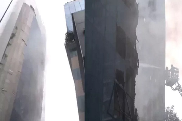 वीडियो में देखा जा सकता है कि बिल्डिंग से आग की लपटें उठ रही है। वहीं काले धुएं का गुबार देखकर घटनास्थल पर मौजूद लोगों के बीच अफरातफरी का माहौल है।