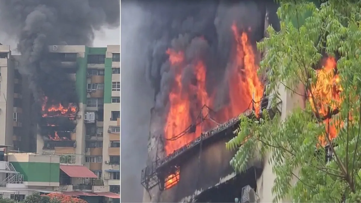 गाजियाबाद के इंदिरापुरम स्थित गौड़ ग्रीन एवेन्यू में भीषण आग, 9वीं से 13वीं मंजिल तक फैली लपटें; 3 घंटे बाद पाया गया काबू