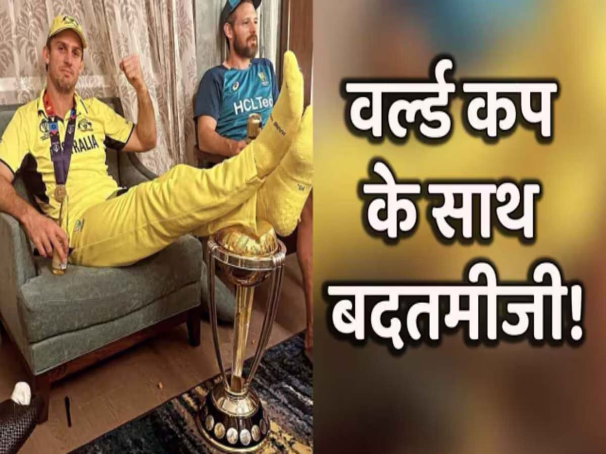 ऑस्ट्रेलिया की टीम के कप्तान पैट कमिंस ने मिचेल मार्श की एक तस्वीर को सोशल मीडिया पर शेयर किया, जिसमें वह वर्ल्ड कप 2023 की ट्रॉफी पर पैर रखकर हाथ में ड्रिंक लिए नजर आ रहे हैं। भारतीय फैंस इससे आहत हुए हैं और उनको जमकर लताड़ा जा रहा है। हालांकि, कुछ क्रिकेट फैंस का ये भी कहना है कि ये उनका दिन है और उनकी ट्रॉफी है तो वे इसका इस्तेमाल कैसे भी कर सकते हैं। वे चाहें तो इस पर पेशाब कर सकते हैं और इसे पैरों तले कुचल सकते हैं। हालांकि, आमतौर पर ट्रॉफी के साथ इस तरह का बर्ताव करना सही नहीं माना जाता। हमने ऑस्ट्रेलिया के ही कई खिलाड़ियों की तस्वीर देखी है, जो उसे सिर से ऊपर रख रहे हैं या चूम रहे हैं। महान फुटबॉलर लियोनेल मेसी को वर्ल्ड कप की ट्रॉफी के साथ सोते देखा गया है, लेकिन इस तरह की हरकत करना गलत है। भले ही आपकी संस्कृति में कुछ भी हो, लेकिन फिर भी इस तरह की हरकत किसी को भी बर्दाश्त नहीं होगी। यही कारण है कि अरविंद चोटिया नाम के एक यूजर ने एक्स पर लिखा, “पश्चिम का विकास जरूर हुआ, लेकिन सभ्यता नहीं आई। जिसे सिर-माथे पर रखा जाता है, उसे पैरों तले देखकर अफसोस तो होगा ही, लेकिन करें क्या?”