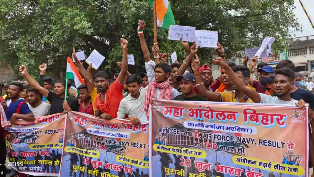 पटना: अग्निपथ के विरोध में सोमवार को भारत बंद का सुबह नौ बजे तक बिहार में मिला-जुला असर देखने को मिला। पटना जंक्शन सहित सभी स्टेशनों और शहरों के प्रमुख चौक-चौराहों पर बिहार पुलिस और केंद्रीय सुरक्षाबल तैनात है।