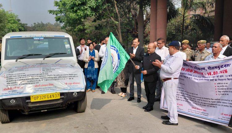 गौतमबुद्धनगर, 10 मार्च 2026। आगामी राष्ट्रीय लोक अदालत के व्यापक प्रचार-प्रसार के लिए माननीय जनपद न्यायाधीश एवं अध्यक्ष जिला विधिक सेवा प्राधिकरण गौतमबुद्धनगर अतुल श्रीवास्तव ने मंगलवार को प्रचार वाहन को हरी झंडी दिखाकर रवाना किया। इस वाहन के माध्यम से जनपद भर में लोगों को राष्ट्रीय लोक अदालत के बारे में जागरूक किया जाएगा, ताकि अधिक से अधिक लोग अपने लंबित मामलों का त्वरित निस्तारण करा सकें।