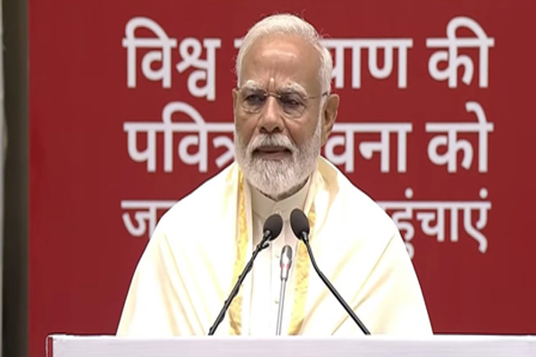 नई दिल्ली । प्रधानमंत्री नरेंद्र मोदी ने बुधवार को नई दिल्ली के विज्ञान भवन में जैन धर्म के सबसे पूज्य और सार्वभौमिक मंत्र ‘नवकार महामंत्र’ का सामूहिक जाप किया। इस दौरान उन्होंने ‘नवकार महामंत्र दिवस’ कार्यक्रम को संबोधित किया। उन्होंने कहा कि ‘नवकार महामंत्र’ विनम्रता, शांति और सार्वभौमिक सद्भाव का प्रतीक है। इस कार्यक्रम में भाग लेकर मुझे खुशी हुई। प्रधानमंत्री मोदी ने ‘नवकार महामंत्र दिवस’ कार्यक्रम को संबोधित करते हुए कहा, “’नवकार महामंत्र’ सिर्फ एक मंत्र नहीं है। यह हमारे विश्वास का केंद्र है और इसका महत्व केवल आध्यात्मिक नहीं है। यह हमारे जीवन का मूल स्वर है। यह स्वयं से लेकर समाज तक सबको राह दिखाता है, जन से जग तक की यात्रा है। इस मंत्र का प्रत्येक पद ही नहीं, बल्कि प्रत्येक अक्षर अपने आप में मंत्र है।”