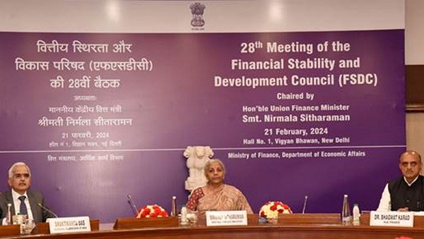वित्त मंत्रालय ने ‘एक्स’ पोस्ट पर जारी एक बयान में बताया कि केंद्रीय वित्त मंत्री निर्मला सीतारमण ने नई दिल्ली में वित्तीय स्थिरता और विकास परिषद (एफएसडीसी) की 28वीं बैठक की अध्यक्षता की। इस बैठक में वित्त राज्य मंत्री डॉ. भागवत कराड और रिजर्व बैंक ऑफ इंडिया (आरबीआई) के गवर्नर शक्तिकांत दास भी उपस्थित थे।