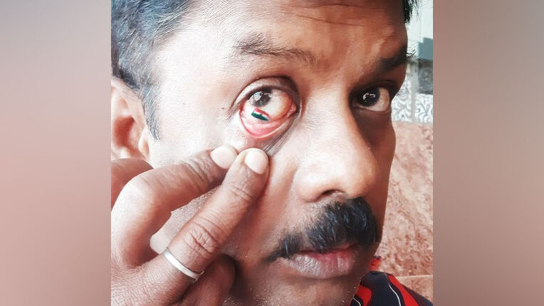जी हां ऐसी ही एक देशभक्त तमिलनाडु के कोयंबटूर में देखने को मिले जो अब पुरे देश में सुर्ख़ियों में है। दरअसल तमिलनाडु के कोयंबटूर में एक शख्स ने अपनी आंख के अंदर तिरंगा बना लिया। अब सोशल मीडिया पर शख्स की बहुत तेजी से तस्वीर वायरल हो रही है। बता दें कि इस शख्स का नाम राजा है, जिन्होंने अपने आंख में तिरंगा बनाया है और इसके लिए मिनिएचर आर्टिस्ट की मदद ली, साथ ही उनोन्हे एक चेतावनी दी है।