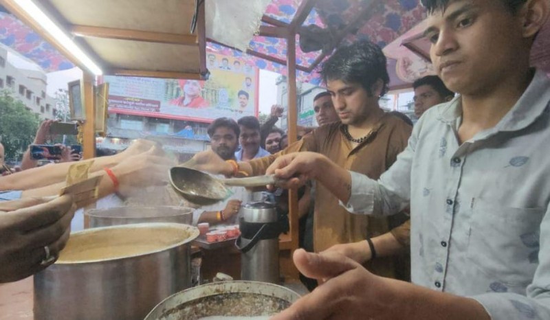 मुंबई: बागेश्वर धाम के पीठाधीश्वर पंडित धीरेंद्र कृष्ण शास्त्री आए दिन चर्चाओं में बने रहते हैं। फ़िलहाल, वह अंबरनाथ मुंबई में हैं। बागेश्वर धाम सरकार के ट्विटर अकाउंट पर साझा की गई जानकारी के अनुसार, पंडित धीरेन्द्र आज मंगलवार (9 मई) को सुबह अचानक चाय की टपरी पर जा पहुंचे और अपने हाथों से चाय बनाकर लोगों को पिलाई। बागेश्वर धाम सरकार के आधिकारिक ट्विटर अकाउंट ने पंडित धीरेंद्र की चाय बेचते हुए कई तस्वीरें शेयर की हैं।