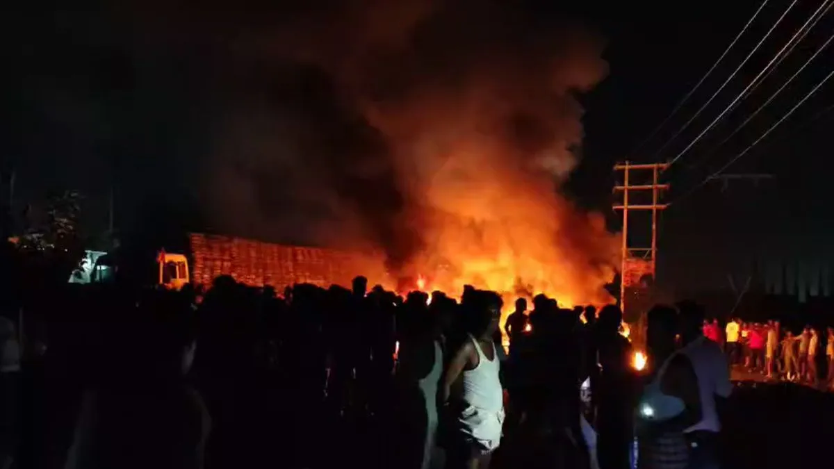 ग्रामीणों ने आगजनी कर रोड जाम किया
