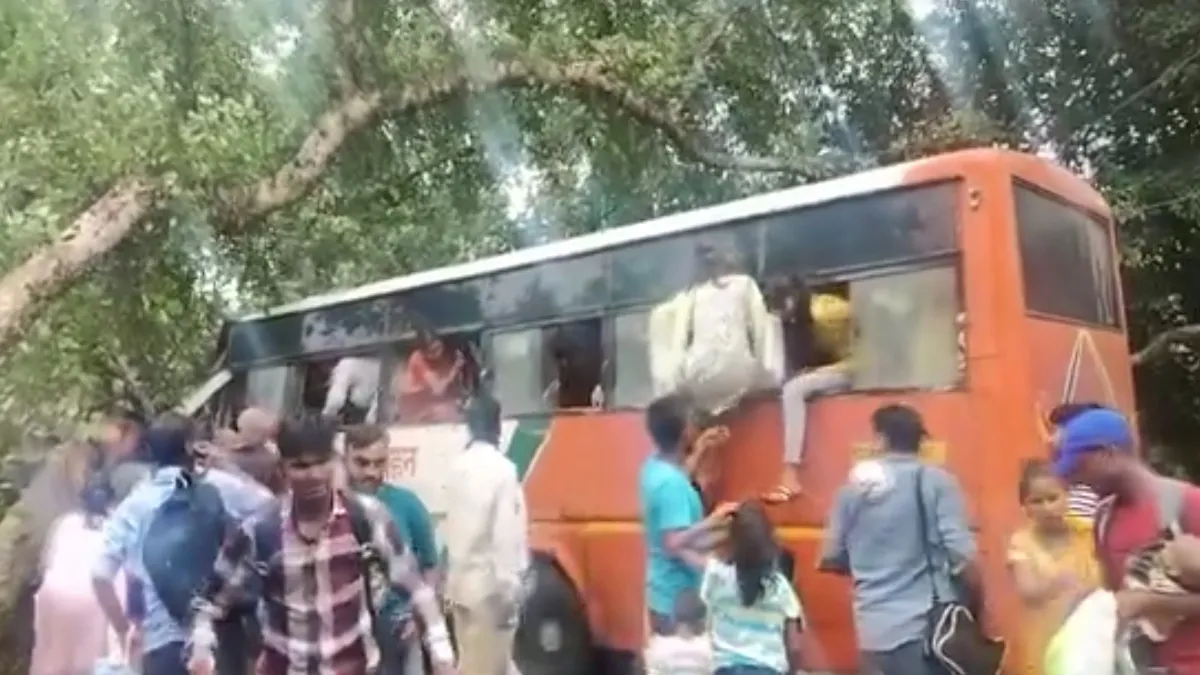 ये बस कांट्रेक्ट के तहत यूपी रोडवेज में चलाई जा रही थी। बस पर पेड़ गिरते ही घटनास्थल पर अफरा-तफरी मच गई। पूरा का पूरा पेड़ ही बस के ऊपर जा गिरा था। बस की खिड़की से कूदते हुए यात्री नजर आए। अपनों को बचाने के लिए लोग चिल्ला रहे थे। कुछ यात्री बस में खिड़की से घुसकर अपनों के बचाने में लगे हुए थे।