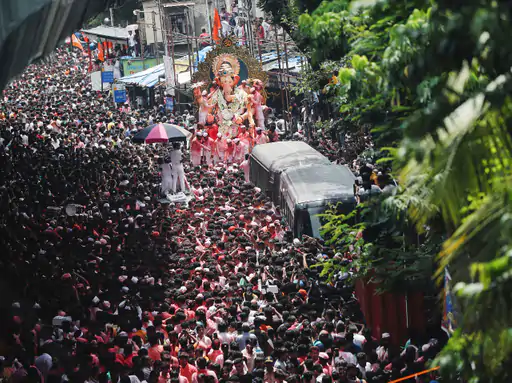 देश के कई शहरों में अनंत चतुर्दशी के अवसर पर भव्य विसर्जन यात्रा निकाली गई। मुंबई का गणेश उत्सव देशभर में प्रसिद्ध है। फोटो वहीं की है। कोविड की वजह से दो साल बाद इस बार बिना किसी पाबंदी के शोभा यात्राएं निकाली गईं, जिसमें हजारों लोग शामिल हुए।