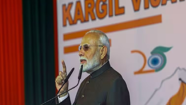 नई दिल्ली: प्रधानमंत्री नरेंद्र मोदी ने 1999 के कारगिल युद्ध में पाकिस्तान पर भारत की जीत की 25वीं वर्षगांठ के मौके पर शुक्रवार (26 जुलाई) को द्रास में इस युद्ध के शहीदों को श्रद्धांजलि दी. इस मौके पर पीएम मोदी ने सेना की वन रैंक, वन पेंशन योजना को लेकर बड़ी बात कही है. पीएम मोदी ने कहा कि सच्चाई ये है कि ये लोग देश के युवाओं को गुमराह कर रहे हैं.