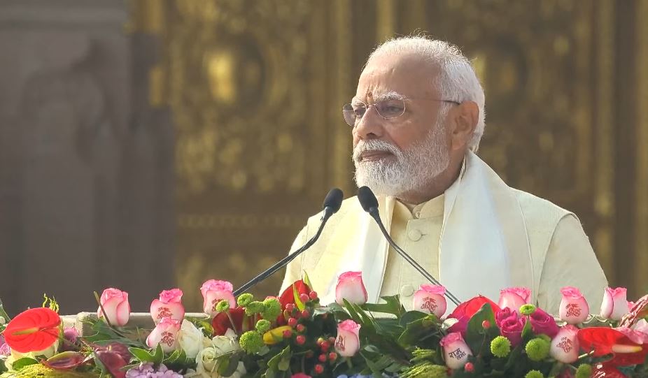 प्रधानमंत्री नरेंद्र मोदी ने कहा कि देव से देश और राम से राष्ट्र की चेतना का विस्तार हो रहा है। राम मंदिर के निर्माण के बाद से देशवासियों में नया उत्साह पैदा हो रहा था। आज हमें सदियों की धरोहर मिली है, श्रीराम का मंदिर मिला है। गुलामी की मानसिकता को तोड़कर उठ खड़ा होता राष्ट्र ऐसे ही नवइतिहास का सृजन करता है।