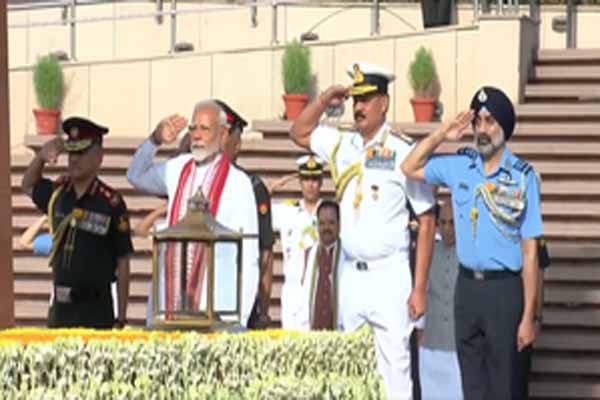 इसके बाद नरेंद्र मोदी ने नेशनल वॉर मेमोरियल पहुंचकर शहीद जवानों को नमन भी किया। नेशनल वॉर मेमोरियल पहुंचने पर तीनों सेनाओं के प्रमुखों ने उनका स्वागत किया। यहां भाजपा के वरिष्ठ नेता राजनाथ सिंह भी उनके साथ मौजूद रहे।