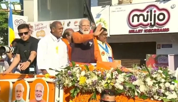 विधानसभा चुनाव प्रचार के बीच प्रधानमंत्री नरेंद्र मोदी ने पुडुचेरी में जोरदार रोड शो कर चुनावी माहौल को और गर्म कर दिया। शुक्रवार को हुए इस रोड शो में प्रधानमंत्री ने जनता का अभिवादन स्वीकार किया और एनडीए के पक्ष में समर्थन जुटाने की अपील की। करीब 1.2 किलोमीटर लंबे इस रोड शो में उनके साथ गठबंधन के कई प्रमुख नेता भी मौजूद रहे। इस दौरान सड़कों पर बड़ी संख्या में लोगों की भीड़ उमड़ पड़ी, जिसने पूरे माहौल को चुनावी रंग में रंग दिया।