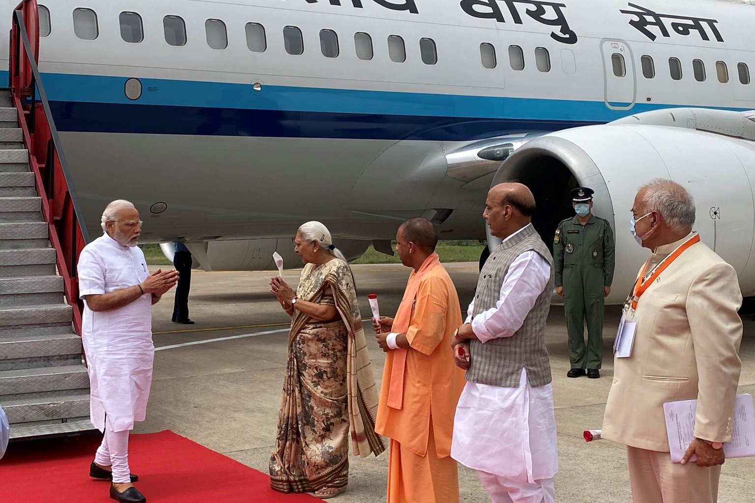 लखनऊ: प्रधानमंत्री नरेन्द्र मोदी उत्तर प्रदेश की राजधानी लखनऊ पहुंच चुके हैं। चौधरी चरण सिंह अन्तर-राष्ट्रीय एअरपोर्ट पर उतरने के बाद उत्तर प्रदेश की राज्यपाल आनंदीबेन पटेल, मुख्यमंत्री योगी आदित्यनाथ और रक्षामंत्री राजनाथ सिंह ने प्रधानमंत्री का स्वागत किया।