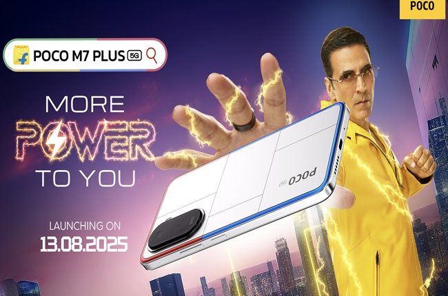 Poco M7 Plus 5G: पोको भारतीय बाज़ार में Poco M7 Plus 5G स्मार्टफोन को उतारने जा रहा है। ब्रांड ने अपनी फ्लिपकार्ट माइक्रोसाइट पर लॉन्च डेट का ऐलान कर दिया है। अपकमिंग फोन 13 अगस्त, 2025 को पेश किया जाएगा। इसके साथ ही पता चला है कि डिवाइस में 7,000 एमएएच की बैटरी होगी और सिलिकॉन-कार्बन बैटरी तकनीक का इस्तेमाल करेगी। इससे पहले, पोको ने खुलासा किया था कि यह 15 हज़ार रुपये की कीमत वाले सेगमेंट में आएगा।