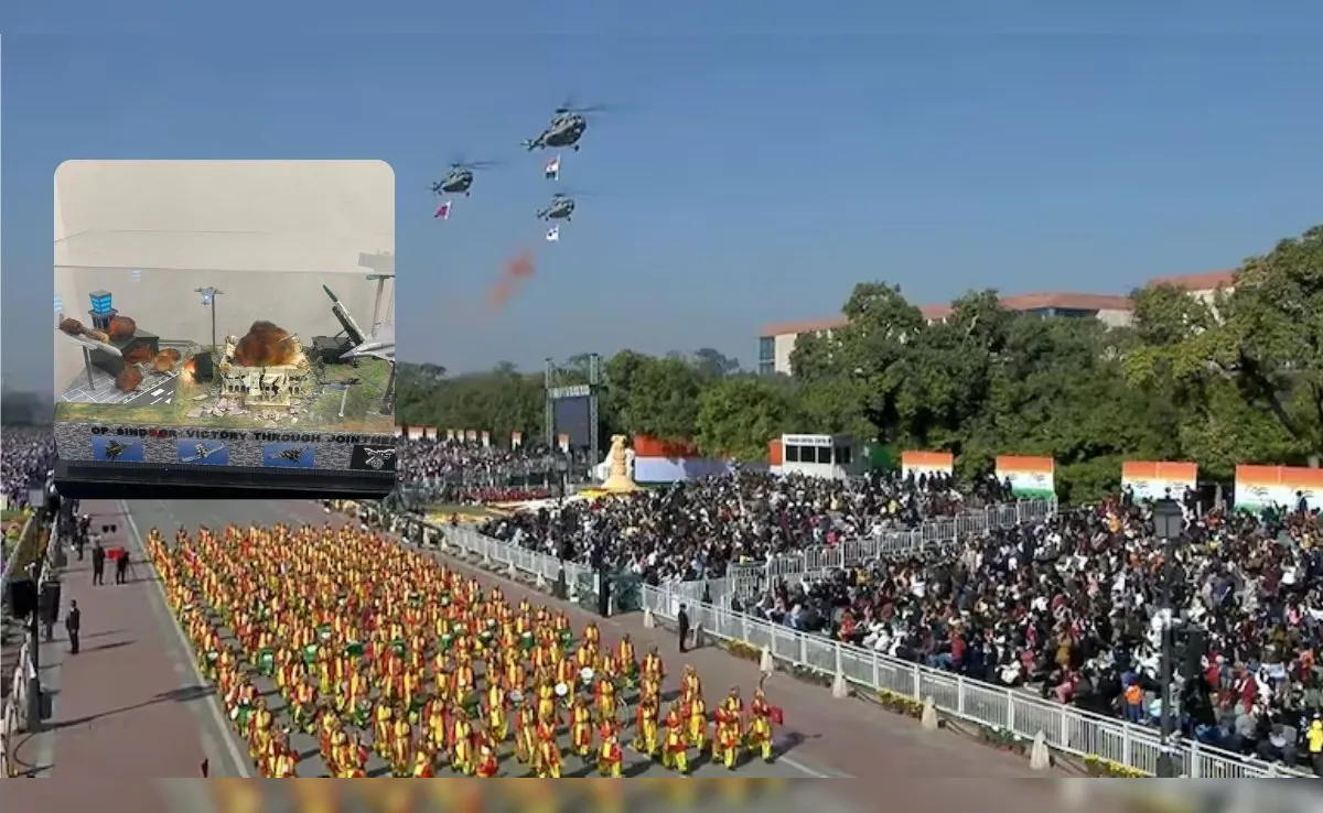 झांकी में ‘विरासत, विविधता और विकास’ के समन्वय को ऑपरेशन सिंदूर की विशिष्ट पहचान के रूप में प्रस्तुत किया गया, जो आधुनिक तकनीक के साथ भारत की सैन्य परंपरा को दर्शाता है।