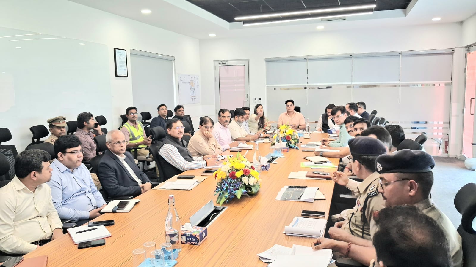 गौतमबुद्धनगर, 23 मार्च 2026। जेवर स्थित नोएडा इंटरनेशनल एयरपोर्ट के प्रस्तावित लोकार्पण कार्यक्रम को लेकर तैयारियां अब तेज हो गई हैं। इसी क्रम में मेरठ मंडल के मंडलायुक्त भानु चंद्र गोस्वामी की अध्यक्षता में एयरपोर्ट सभागार में अहम बैठक आयोजित की गई, जिसमें संबंधित जिलास्तरीय अधिकारियों ने हिस्सा लिया। बैठक में अब तक की तैयारियों की विस्तृत समीक्षा करते हुए सभी विभागों को आपसी समन्वय के साथ समयबद्ध और मानकों के अनुरूप कार्य पूरा करने के निर्देश दिए गए, ताकि आयोजन भव्य और सुव्यवस्थित तरीके से संपन्न हो सके।