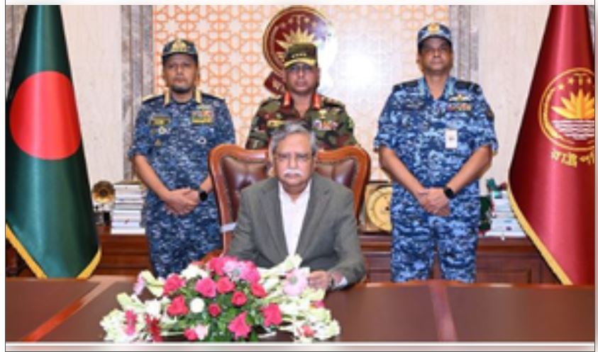 इससे पहले सोमवार रात को अंतरिम सरकार के गठन पर चर्चा के लिए सेना प्रमुख जनरल वाकर-उज-जमां के साथ बंगभवन में तीनों सेनाओं के प्रमुखों, राजनीतिक नेताओं, नागरिक समाज के प्रतिनिधियों और आरक्षण आंदोलन के नेताओं की बैठक हुई थी। प्रेस बयान के अनुसार, राष्ट्रपति शहाबुद्दीन की अध्यक्षता में बैठक हुई में उन्होंने विरोध प्रदर्शनों में मारे गए लोगों को श्रद्धांजलि देने के लिए एक प्रस्ताव पारित किया और उनकी आत्माओं की शांति के लिए प्रार्थना की।