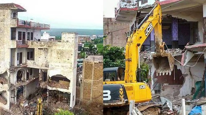 आरोप है कि यहां कई अवैध निर्माण थे और उन होटल को अवैध तरीके से बनाया गया था जहां से दंगाई पथराव कर रहे थे। हरियाणा पुलिस ऐसी सभी इमारतों की पहचान कर रही है जहां से पत्थर फेंके गए थे। उपमंडलीय मजिस्ट्रेट अश्विनी कुमार ने बताया कि जिन निर्माणों को तोड़ा गया, वे ढांचे अवैध रूप से निर्मित थे और इनका इस्तेमाल ‘‘गुंडों’’ ने हाल में हिंसा के दौरान पथराव के लिए किया था। इससे पहले, जिला प्रशासन ने शनिवार को नलहड़ मेडिकल कॉलेज के आसपास की 2.6 एकड़ जमीन सहित 12 अलग-अलग स्थानों पर अवैध निर्माण पर बुलडोजर चलाया था।