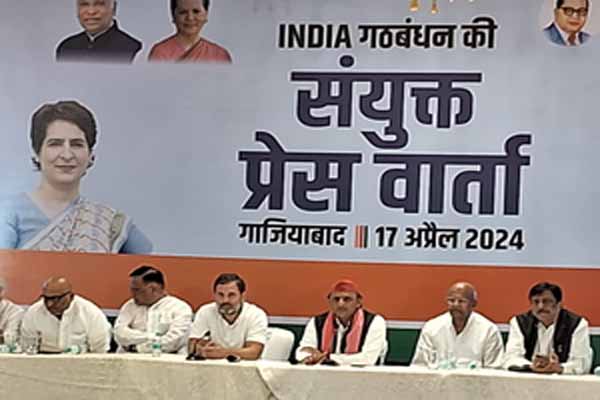 गाजियाबाद। गाजियाबाद में राहुल गांधी और अखिलेश यादव ने बुधवार को एक संयुक्त प्रेस कॉन्फ्रेंस की। इस दौरान उन्होंने भाजपा और पीएम मोदी पर निशाना साधा। सपा प्रमुख अखिलेश यादव ने बेरोजगारी और नौजवानों का मुद्दा उठाया तो राहुल गांधी ने इलेक्टोरल बॉन्ड के मुद्दे पर भाजपा को घेरा।