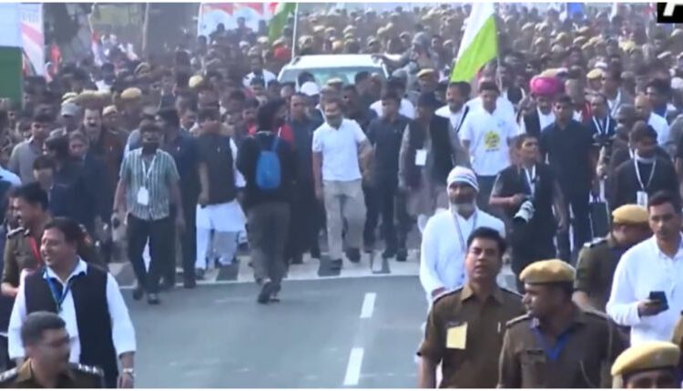 झालावाड़: कांग्रेस शासित राजस्थान (Rajasthan) में पार्टी नेता राहुल गांधी (Rahul Gandhi) की अगुवाई वाली ‘भारत जोड़ो यात्रा’ (Bharat Jodo Yatra) सोमवार सुबह शुरू हुई। यात्रा झालावाड़ के झालरापाटन में काली तलाई से शुरू हुई। कांग्रेस शासित राजस्थान में इस यात्रा में बड़ा जनसैलाब देखने को मिला। वैसे कांग्रेस ने राहुल गांधी के आने से पहले राजस्थान में पूरी तैयारी की थी।