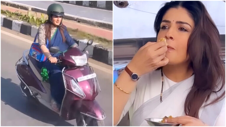 भोपाल की सड़कों पर स्कूटी दौड़ाती नजर आईं रवीना टंडन, कहीं खाए समोसे, तो कहीं ई-रिक्शा की सवारी का लिया आनंद