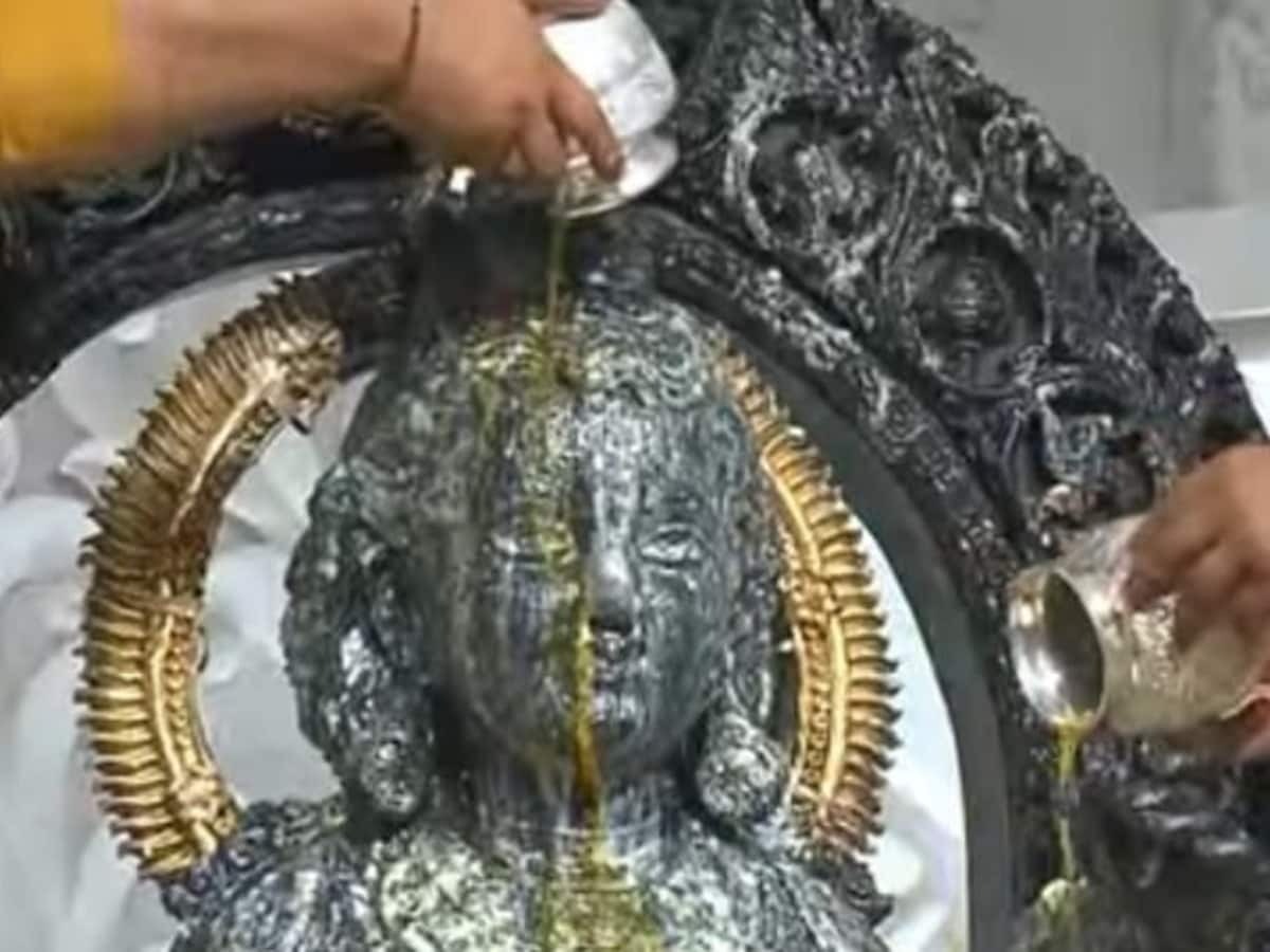#WATCH | Shri Ram Lalla Mahabhishek performed at Ram Janmabhoomi Temple in Ayodhya on the occasion of the first anniversary of ‘Pran Pratishtha’