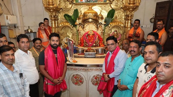 मुंबई : टीम इंडिया के कप्तान रोहित शर्मा और बीसीसीआई सचिव जय शाह ने बुधवार को मुंबई के सिद्धिविनायक मंदिर में स्पेशल हाजिरी लगाई। दोनों ने टी20 वर्ल्ड कप 2024 ट्रॉफी के साथ दर्शन किए और भगवान गणेश का आशीर्वाद लिया। रोहित और शाह की तस्वीर सोशल मीडिया पर वायरल हो रही है। फोटो की काफी चर्चा हो रही है क्योंकि ट्रॉफी को भी हार पहनाया गया है। दर्शन करने के बाद रोहित और शाह गुलाबी रंग के स्टोल में नजर आए। बता दें कि भारत ने 29 जून को टी20 वर्ल्ड कप अपने नाम किया था। भारत ने 11 साल बाद आईसीसी ट्रॉफी का सूखा समाप्त किया था।