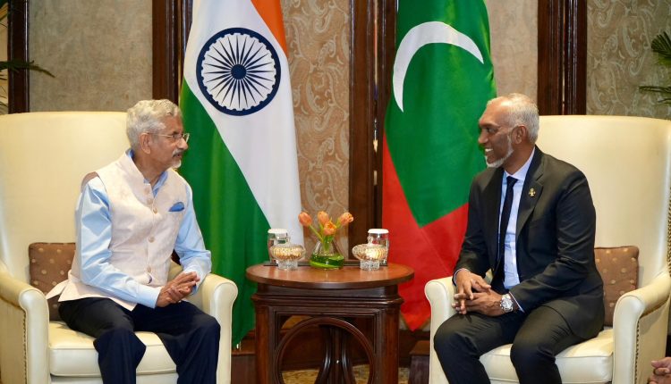 नई दिल्ली : केंद्रीय मंत्री एस. जयशंकर ने भारत दौरे पर आये मालदीव के राष्ट्रपति मोहम्मद मुइज्जू से सोमवार को यहां मुलाकात की। प्रधानमंत्री नरेंद्र मोदी के शपथ ग्रहण समारोह में शामिल होने के लिए आये मुइज्जू की इस यात्रा के साथ दोनों देश आपसी रिश्तों में पिछले कुछ समय में आई खटास दूर करने की कोशिश कर रहे हैं। जयशंकर ने एक्स पर मुलाकात की तस्वीर साझा करते हुए एक पोस्ट में लिखा, “भारत और मालदीव के मिलकर काम करने की उम्मीद करता हूं।”