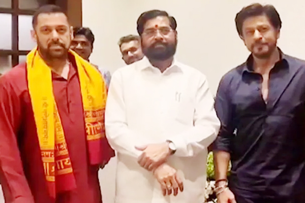 मुंबई: सलमान खान और शाहरुख खान रविवार की शाम महाराष्ट्र के सीएम एकनाथ शिंदे के घर पहुंचे। दोनों वहां गणपति का दर्शन पहुंचे थे। शाहरुख खान ब्लू कलर के कुर्ते में थे, जबकि सलमान रेड कुर्ते में नजर आए। सीएम शिंदे ने शाहरुख और सलमान को शॉल देकर स्वागत किया। उन्होंने दोनों स्टार्स को गणेश जी की मूर्ति भी गिफ्ट की।