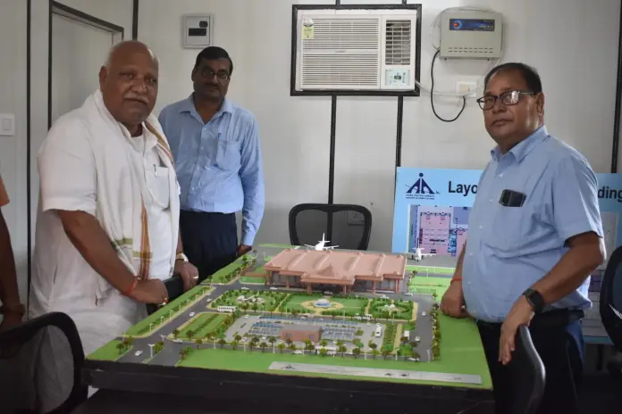 अयोध्या: सांसद लल्लू सिंह ने मंदिर मॉडल के रुप में निर्मित होने वाले श्रीराम एयरपोर्ट का निरीक्षण किया। भारतीय विमान पत्तन प्राधिकरण के अधिकारियों ने मानचित्र के साथ सांसद लल्लू सिंह को रन-वे तथा एयरपोर्ट के भवन निर्माण के बारे में विस्तार से जानकारी दी। रन-वे व भवन निर्माण को सांसद ने मौके पर पहुंचकर भी देखा। इसके उपरान्त अस्थाई कार्यालय पर रखे एयरपोर्ट के मॉडल का भी सांसद ने अवलोकन किया।