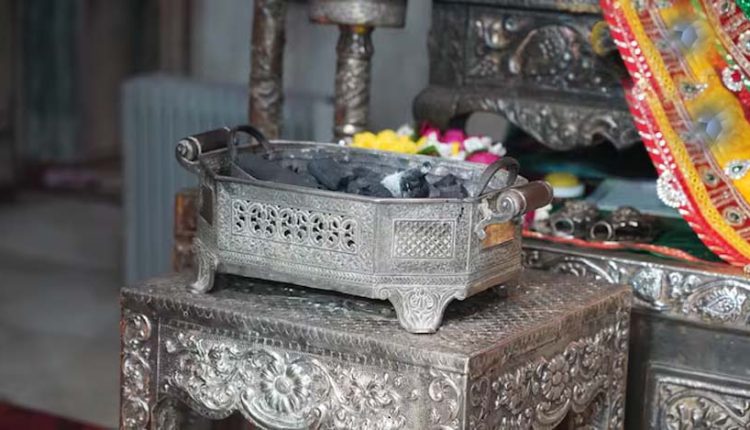 भगवान को ठंड से बचाने के लिए वृंदावन में जलाई गई चांदी की अंगीठी, भगवान ने हाथ में पहने ऊनी दस्ताने