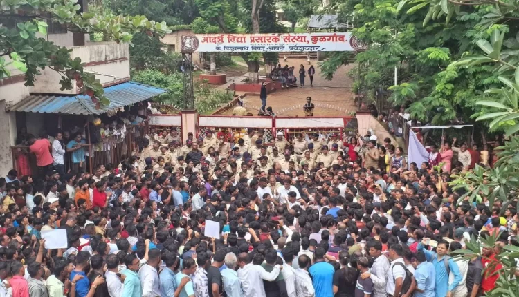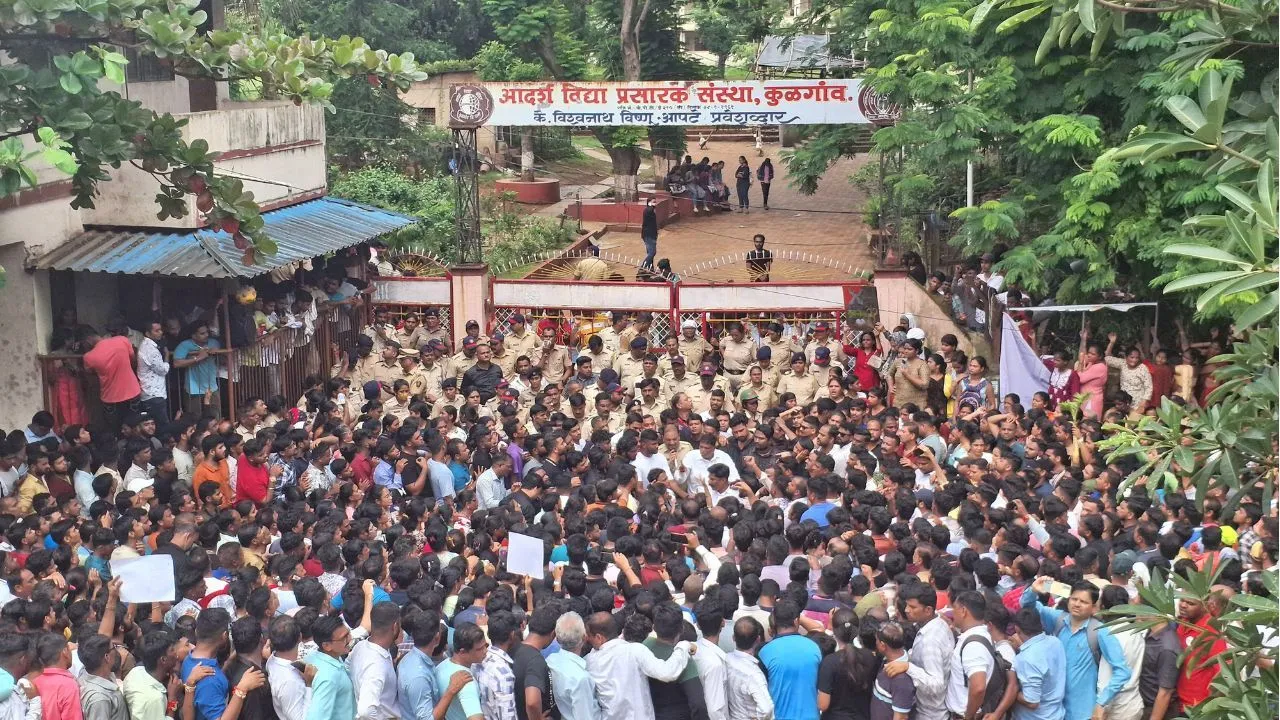 बदलापुर: बदलापुर के एक प्रतिष्ठित स्कूल आदर्श विद्यालय में जूनियर केजी में पढ़ने वाली 2 मासूम बच्चियों के साथ स्कूल के ही एक 24 वर्षीय सफाई कर्मचारी द्वारा किए गए दुष्कर्म से अभिभावकों के साथ साथ शहर के नागरिकों में घटना वाले दिन से भारी नाराजी व्याप्त थी और इसकी प्रतिक्रिया मंगलवार को शहर में देखने को मिली। दुष्कर्म करने वाले आरोपी को फांसी दो की मांग को लेकर सुबह स्कूल में पढ़ने वाले विद्यार्थियों के सेंकडों अभिभावको ने स्कूल के सामने धरना प्रदर्शन कर इस कृत्य की निंदा की।