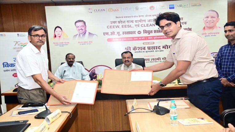 लखनऊ: उत्तर प्रदेश (Uttar Pradesh) राज्य ग्रामीण आजीविका मिशन द्वारा प्रेरणा ओजस कार्यक्रम के अन्तर्गत ग्रामीण क्षेत्रों में सौर ऊर्जा (Solar Energy) को बढ़ावा देने के लिए प्रदेश के उप मुख्यमंत्री केशव प्रसाद मौर्य (Keshav Prasad Maurya) की अध्यक्षता में आजीविका मिशन और एशिया की अग्रणी संस्था काउंसिल फार एनर्जी एनवायरमेंट एण्ड वाटर, एनर्जी एफिशिएंसी सर्विसेज लिमिटेड और क्लीन के साथ उ.प्र. ग्रामीण सड़क विकास अभिकरण के सभागार में एमओयू हस्ताक्षर से संबंधित कार्यक्रम सम्पन्न हुआ। इसके साथ ही उप मुख्यमंत्री द्वारा विद्युत सखी पोर्टल का शुभारम्भ भी किया गया। इस अवसर पर आजीविका मिशन तथा एशिया की अग्रणी संस्था काउंसिल फार एनर्जी एनवायरमेंट एण्ड वाटर, एनर्जी एफिशिएंसी सर्विसेज लिमिटेड और क्लीन के साथ अलग-अलग उ.प्र. ग्रामीण सड़क विकास अभिकरण के सभागार में एमओयू हस्ताक्षर किए गए।