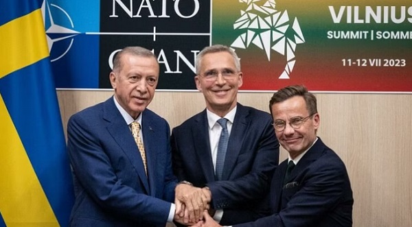 ब्रसेल्स : स्वीडन (Sweden) के उत्तरी अटलांटिक संधि संगठन (नाटो) में शामिल होने का रास्ता साफ हो गया है। तुर्किये (turkeys) के राष्ट्रपति रजब तैयब एर्दोआन ने नाटो सदस्यता के लिए स्वीडन के प्रस्ताव को ग्रैंड नेशनल असेंबली में आगे बढ़ाने और उसका समर्थन करने पर सहमति जताई है। नाटो के महासचिव जेन्स स्टोलटेनबर्ग ने नए घटनाक्रम की जानकारी देते हुए इसे ऐतिहासिक कदम बताया।