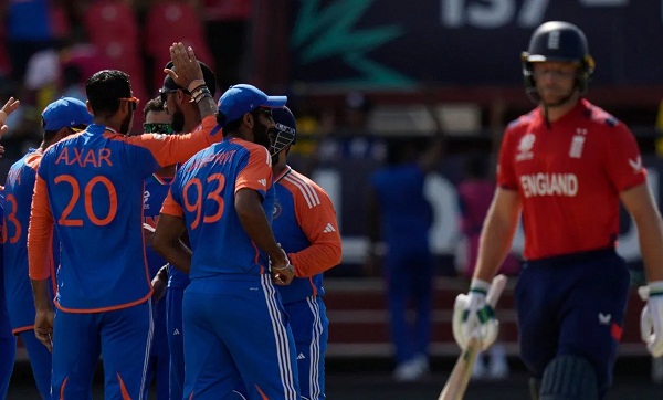 गयाना : टी-20 विश्व कप 2024 के दूसरे सेमीफाइनल में भारतीय क्रिकेट टीम ने इंग्लैंड क्रिकेट टीमको 68 रन से हराते हुए फाइनल में प्रवेश किया है। प्रोविडेंस स्टेडियम में खेले गए मैच में भारत (India) ने पहले बल्लेबाजी करते हुए निर्धारित 20 ओवर के बाद 7 विकेट के नुकसान पर 171 रन बनाए। जवाब में इंग्लिश टीम (English team.) 16.4 ओवर में 103 रन पर ही ढेर हो गई।