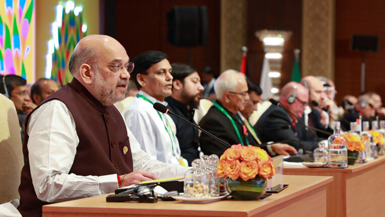 शाह ने कहा कि भारत कई दशकों से सीमा-पार से प्रायोजित आतंकवाद का शिकार रहा है और भारतीय सुरक्षा बलों और आम नागरिकों को गंभीर आतंकवादी हिंसा की घटनाओं से जूझना पड़ा है। उन्होने कहा कि अंतरराष्ट्रीय समुदाय का एक सामूहिक रुख है कि आतंकवाद के सभी रूपों की निंदा की जानी चाहिए। केन्द्रीय गृह मंत्री ने कहा कि भारत का मानना है कि आतंकवाद से निपटने का सबसे प्रभावी तरीका अंतरराष्ट्रीय सहयोग और राष्ट्रों के बीच रियल-टाइम तथा पारदर्शी सहयोग ही है। शाह ने कहा कि वैश्विक स्तर पर मादक पदार्थों के अवैध व्यापार के उभरते चलन और नार्को-आतंकवाद जैसी चुनौतियों से आतंकवाद के वित्तपोषण को एक नया जरिया मिला है।