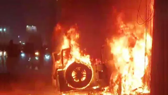 गुस्साए लोगों ने थार को बुरी तरह से जला डाला। गाड़ी का हाल ऐसा कर दिया गया कि थार के सभी टायरों से लेकर सीट तक सब जलकर राख हो गया। बचा तो बस लोहा जिसे देखकर ये तक पहचान पाना मुश्किल है कि ये कार कौन सी थी। हादसे का शिकार हुए लोगों में से कोई खून से लथपथ है तो किसी का पैर टूट गया है। एक महिला की हालत इतनी गंभीर थी कि वो खुद से खड़ी तक नहीं हो पा रही थी और पुलिसवाले सभी को एंबुलेंस में चढ़ा रहे थे। इलाके में तनाव को देखते हुए भारी पुलिस बल तैनात किया गया है। वहीं, पुलिस ने आरोपी ड्राइवर की तलाश शुरू कर दी है।