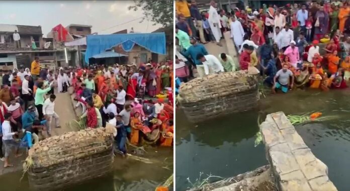 इस दौरान पुलिया का जर्जर हो चुका एक हिस्सा अत्यधिक भार के कारण भरभराकर नहर में गिर गया, जिससे उस पर बैठे दर्जनों लोग नहर में गिर गए। मौके पर मौजूद ग्रामीणों ने नहर में कूदकर लोगों को आनन-फानन बाहर निकाला। हालांकि कुछ लोगों को चोटें आयीं।इस दौरान थोड़ी देर तक अफरातफरी का माहौल हो गया। हादसे को लेकर व्रतियों ने कहा कि यह भगवान भास्कर की कृपा है कि इतने बड़े हादसे के बाद भी लोगों की जान बच गई।