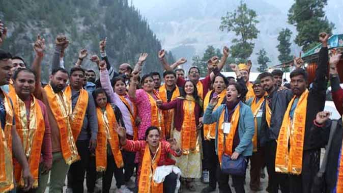 अमरनाथ पहुंचा तीर्थयात्रियों का पहला जत्था, बाबा बर्फानी के किए दर्शन