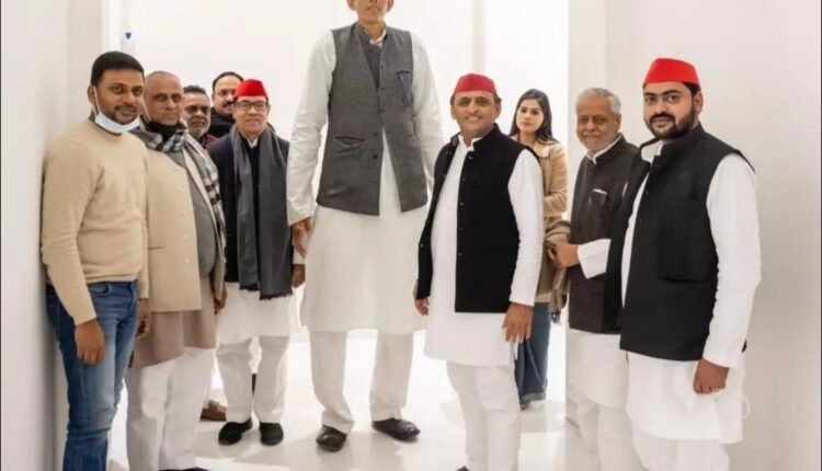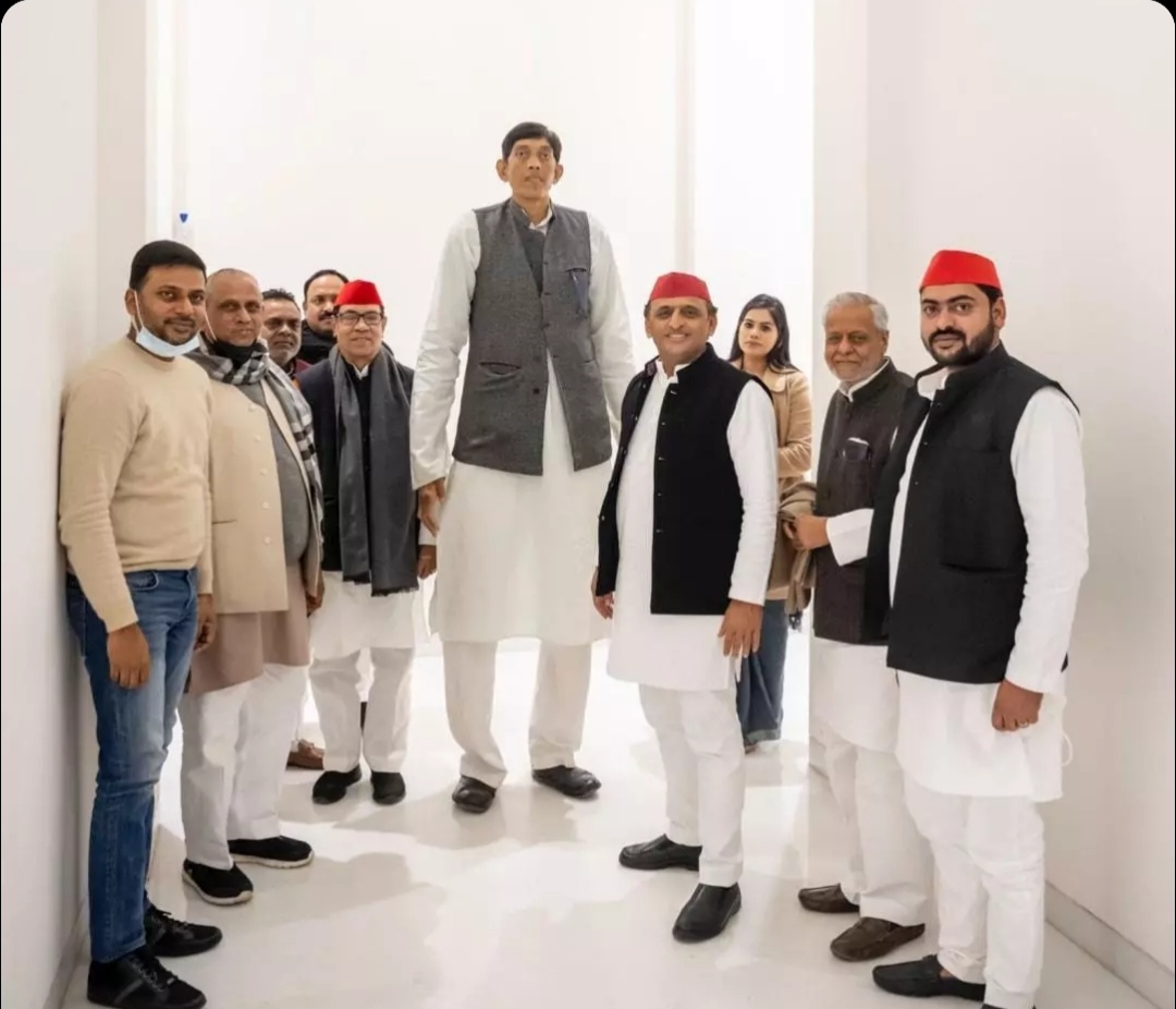भारत के सबसे लंबे कद का व्यक्ति अब समाजवादी पार्टी (सपा) में शामिल हो गया है। पार्टी के एक बयान में कहा गया कि धर्मेंद्र प्रताप ने सपा की नीतियों और अखिलेश यादव के नेतृत्व में भरोसा जताया है।उत्तर प्रदेश चुनाव 2022 में समाजवादी पार्टी को भारत के सबसे लंबे आदमी का साथ मिला है। इस शख्स ने सपा की सदस्यता ली है। अखिलेश और सपा की नीतियों पर भरोसा जताकर राजनीति में कदम रख रहे हैं। सदस्यता लेने के बाद धर्मेंद्र प्रताप सिंह ने अखिलेश यादव का आभार जताया। साथ ही धर्मेंद्र प्रताप ने अपने जीवन की चुनौतियों के बारे में भी बताया।भारत के सबसे लंबे कद के व्यक्ति का नाम धर्मेंद्र प्रताप सिंह है। अब धर्मेंद्र समाजवादी पार्टी (सपा) में शामिल हो गए हैं। पार्टी के एक बयान में कहा गया कि प्रतापगढ़ के धर्मेंद्र प्रताप सिंह ने सपा की नीतियों और अखिलेश यादव के नेतृत्व में भरोसा जताते हुए सपा की सदस्यता हासिल की है।धर्मेंद्र प्रताप सिंह 46 साल के हैं। वह 8 फीट और 2 इंच लंबे हैं और उनका नाम गिनीज वल्र्ड रिकॉर्ड में दर्ज है और वह एशिया के सबसे लंबे पुरुषों में से एक हैं। प्रतापगढ़ जिले के नरहरपुर कसियाही गाव के निवासी के पास मास्टर डिग्री है, लेकिन अबतक बेरोजगार हैं। वे अपने लिए नौकरी खोजने के लिए संघर्ष कर रहे हैं।धर्मेंद्र लखनऊ में एक डॉक्टर से सलाह ली थी, जिन्होंने ऑपरेशन का सुझाव दिया था। चूंकि, आर्थिक संकट और रोजगार ना होने के कारण धर्मेंद्र ने मदद के लिए मुख्यमंत्री योगी आदित्यनाथ की ओर रुख किया और बाद में 2019 में हिप रिप्लेसमेंट सर्जरी करवाई थी।