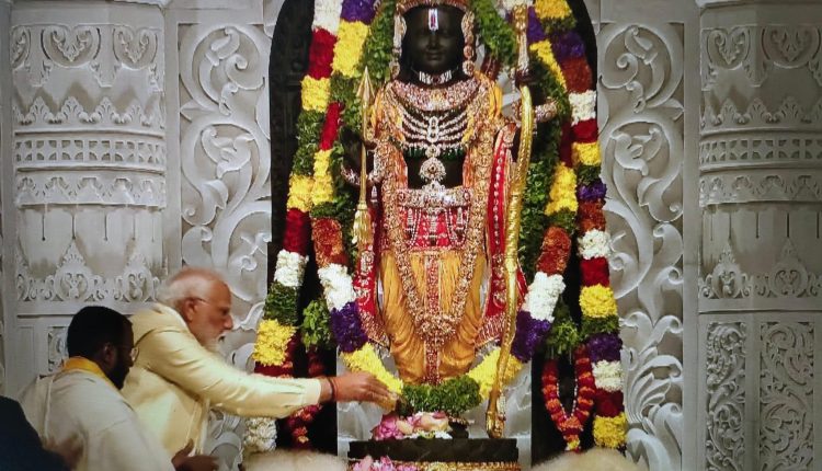 मैं एक अलग ही भाव-भक्ति की अनुभूति कर रहा हूं। मेरे अंतर्मन की ये भाव यात्रा, मेरे लिए अभिव्यक्ति का नहीं, अनुभूति का अवसर है। चाहते हुए भी मैं इसकी गहनता, व्यापकता और तीव्रता शब्दों में बांध नहीं पा रहा हूं। आप भी भली-भांति मेरी स्थिति समझ सकते हैं।”आज इसके पहले प्रधानमंत्री मोदी महर्षि वाल्मिकी अंतरराष्ट्रीय हवाई अड्डे पर उतरे और वहां से हेलीपैड के लिए रवाना हुए। इसके बाद मोदी राम मंदिर जाएंगे जहां वह ‘‘प्राण प्रतिष्ठा” समारोह में हिस्सा ले रहे हैं। समारोह के बाद वह एक सभा को संबोधित करेंगे। प्रधानमंत्री का कुबेर टीला जाने का भी कार्यक्रम है। प्रधानमंत्री मंदिर निर्माण से जुड़े ‘श्रमजीवियों’ (श्रमिकों) से भी आज बातचीत करेंगे।