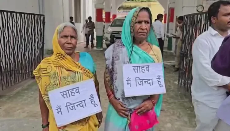 जौनपुर में मृत घोषित किए गए तीन ‘जिंदा’ लोग डीएम दफ्तर पहुंचे