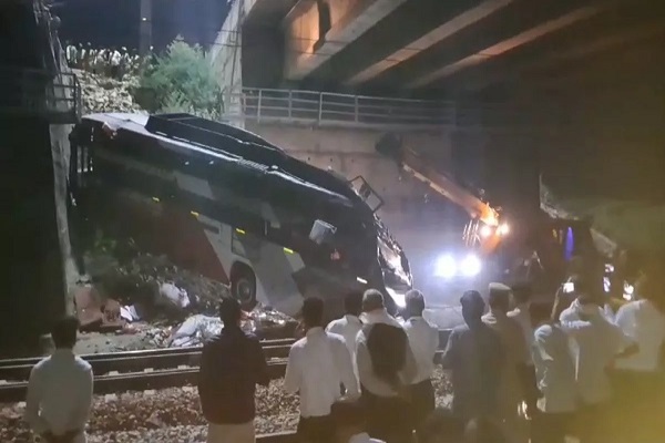 जयपुर: राजस्थान के दौसा में रविवार देर रात एक यात्री बस पुल से रेलवे ट्रैक पर गिर गई, जिससे दो महिलाओं सहित चार लोगों की मौत हो गई और करीब दो दर्जन लोग घायल हो गए वहीं रेलमार्ग भी बाधित हुआ। प्राप्त जानकारी के अनुसार जयपुर मंडल के बांदीकुई-जयपुर रेलखंड के भांकरी-दौसा रेलखंड के मध्य दौसा कलेक्ट्रेट के पास ओवरब्रिज पर देर रात लगभग ढाई बजे बस अनियंत्रित होकर पुल की रैलिंग तोड़ते हुए रेलवे ट्रैक पर जा गिरी । हादसे में चार लोगों ने मौके पर दम तोड़ दिया जबकि घायलों को अस्पताल में भर्ती कराया गया जहां आधा दर्जन से अधिक गंभीर रूप से घायल लोगों को जयपुर रैफर किया गया।
