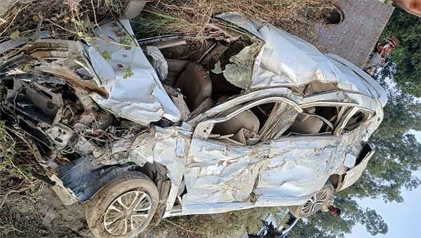 कार अनियंत्रित होकर खाई में पलट गई थी