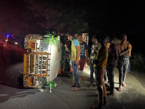 हाथरस: कोतवाली हाथरस गेट क्षेत्र के गांव नगला गजुआ के पास गुरुवार देर रात श्रद्धालुओं से भरी चार पहिया वाहन (मैक्स) अनियंत्रित होकर पलट गया। हादसे में 15 श्रद्धालु घायल है। पुलिस ने सभी घायलों को उपचार के लिए जिला अस्पताल में भर्ती कराया। एक महिला की हालत गंभीर होने पर उसे अलीगढ़ मेडिकल कॉलेज रेफर कर दिया गया है।