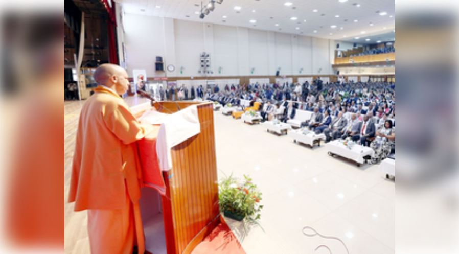 लखनऊ : उत्तर प्रदेश के मुख्यमंत्री योगी आदित्यनाथ ने ‘वसुधैव कुटुंबकम’ के आदर्श वाक्य के महत्व पर जोर देते हुए इसे भारत की वैश्विक मानवता की प्रतिबद्धता का प्रतीक बताया है। उन्होंने इसे भारत का शाश्वत संदेश बताते हुए कहा कि हमने हमेशा से शांति, सौहार्द और सह-अस्तित्व को प्राथमिकता दी है। सीएम योगी ने यह बात शुक्रवार को एलडीए कॉलोनी, कानपुर रोड स्थित सिटी मॉन्टेसरी स्कूल (सीएमएस) के वर्ल्ड यूनिटी कन्वेंशन सेंटर में विश्व के मुख्य न्यायाधीशों के 25वें अंतरराष्ट्रीय सम्मेलन का उद्घाटन करने के दौरान अपने संबोधन में कही। कार्यक्रम में 56 देशों के 178 मुख्य न्यायाधीश और डेलिगेट्स ने भाग लिया।