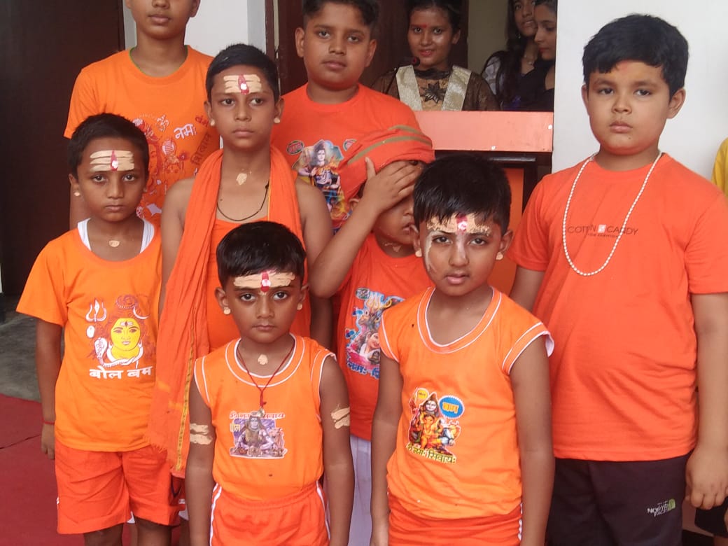आज वेदान्ता इंटरनेशनल स्कूल (Vedanta International School) में सावनोत्सव का आयोजन किया गया जिसमें सर्वप्रथम कार्यक्रम की शुरुवात कावरियों के रुप में सजे छोटे छोटे नौनीहालों ने जयघोष का नारा लगाते हुए देवों के देव महादेव की पूजन – आरती की तत्पश्चात विद्यालय के प्रिंसिपल आर एस शर्मा ने शिव और मां पार्वती का रूप धारण किये बच्चों का आरती उतारकर कार्यक्रम को आगे बढ़ाया ततपश्चात