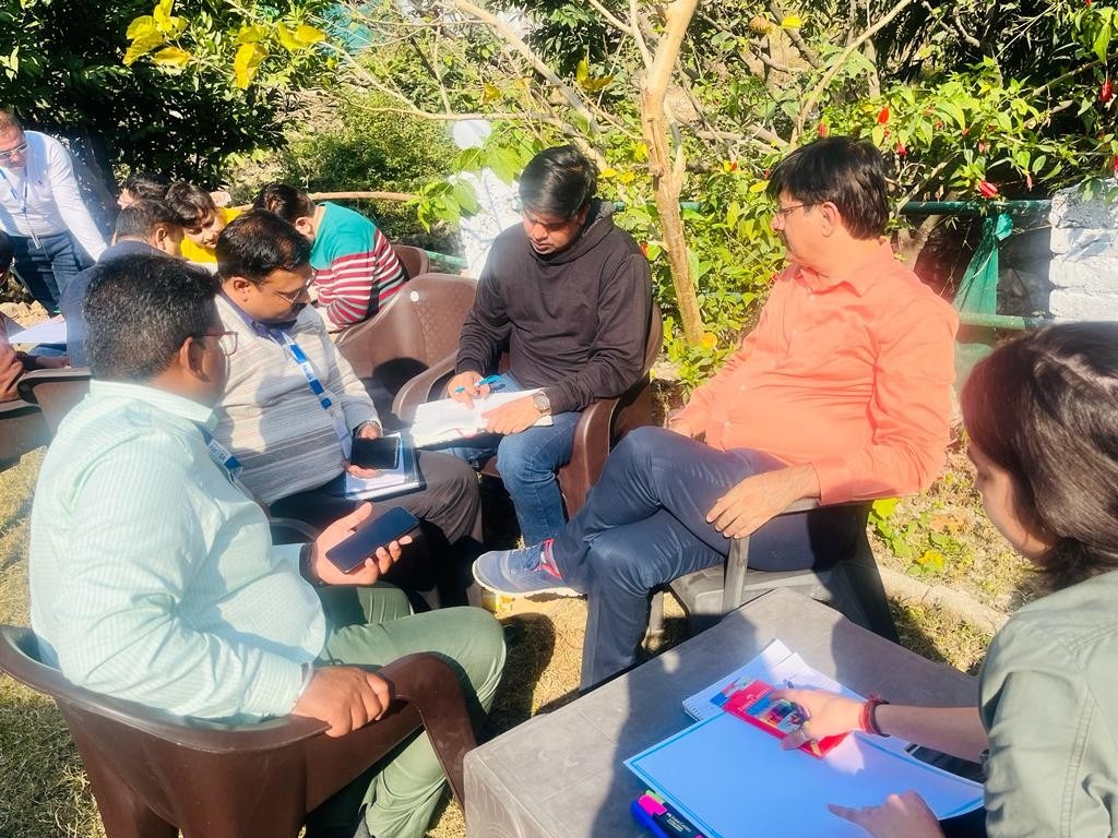इसके बाद टीम ऋषिकेश के लिए रवाना हुई जहां नदी के किनारे एक खूबसूरत स्थल पर प्रशिक्षण गतिविधियों और कायाकल्प के साथ-साथ समीक्षा जारी रखने के लिए एक नेचर रिट्रीट की योजना बनाई गई। अगले दिन की शुरुआत उत्साह से करें; सुबह-सुबह सभी प्रतिभागी नदी तक 3 किमी की सैर के लिए गए, उसके बाद काम करते समय अगले और पिछले मुद्दों से बचने के लिए स्ट्रेचिंग और हल्के व्यायाम सीखे। औपचारिक कार्यक्रम माइक्रोलैब नामक एक एएमटी गतिविधि के साथ शुरू हुआ, जो प्रतिभागियों को यह समझने में मदद करता है कि एक साथ अपने लक्ष्यों को कैसे निर्धारित किया जाए और कैसे हासिल किया जाए। इसके बाद 2024 तक हमारे बड़े मिशन को प्राप्त करने के लिए एक विचार लेखन समूह प्रतियोगिता (VQuest) हुई। टीम के प्रत्येक सदस्य ने जोश और पूरी टीम भावना के साथ भाग लिया।