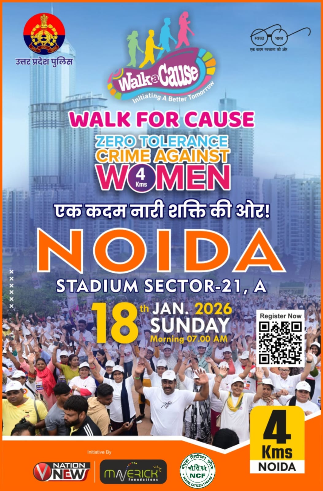 महिला सुरक्षा और सामाजिक जागरूकता को समर्पित वॉकाथॉन, वॉक ए कॉज -द चेंज मेकर्स का आयोजन 18 जनवरी को नोएडा में